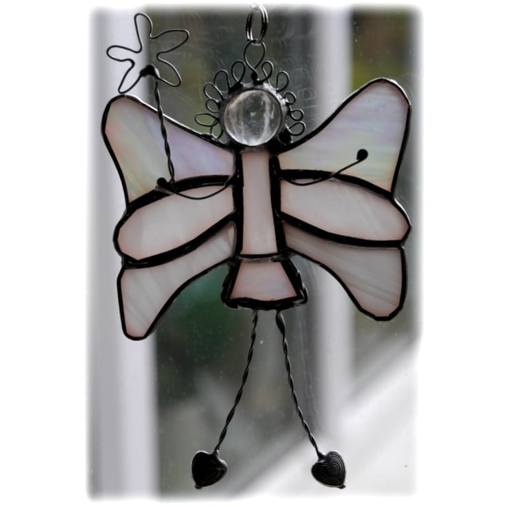 This is a stained glass suncatcher made using the Tiffany copper foil technique.