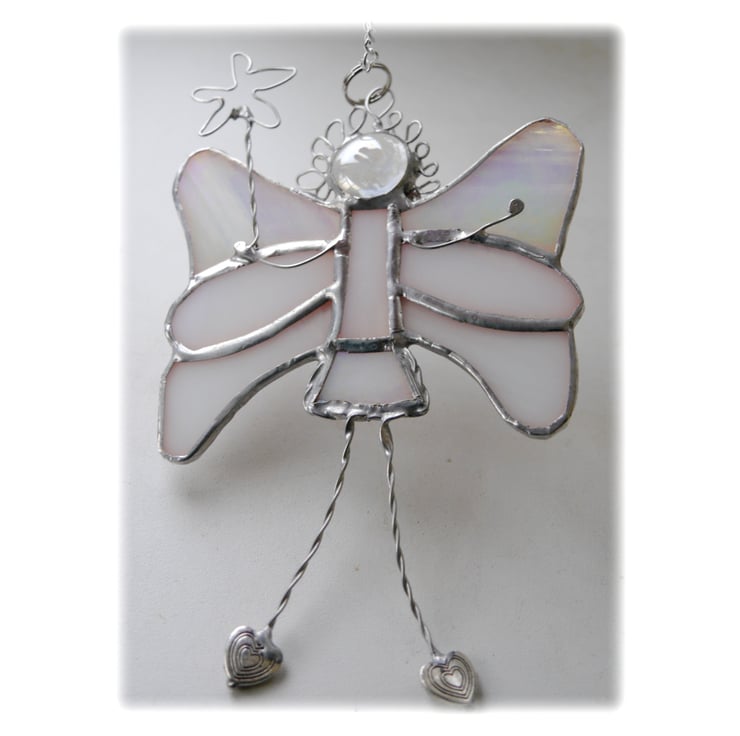 The fairy angel has heart beads for feet and is holding a star wand. Her hair is curly, just to be quirky.
