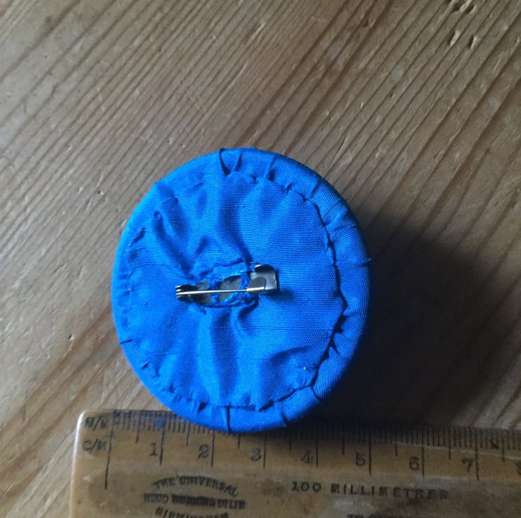 The brooch is hand finished on the back and fastens with a metal brooch pin.