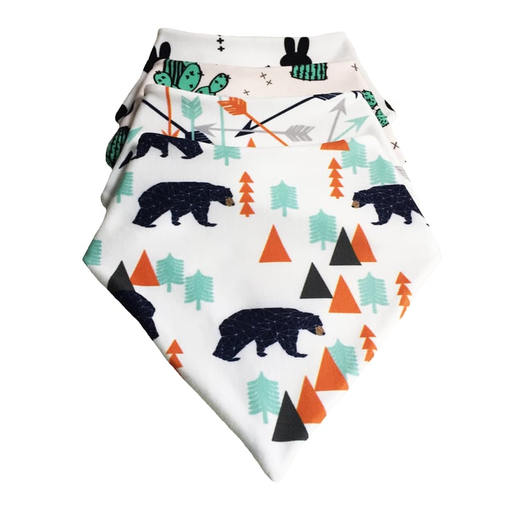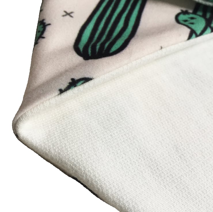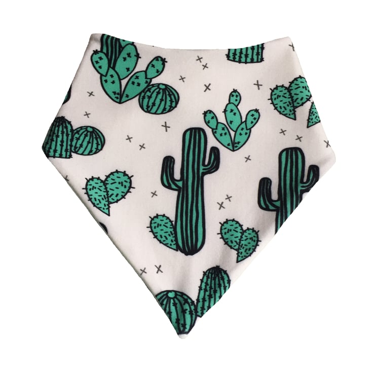 Baby bandana bib in super soft green CACTI CACTUS Jersey Knit fabric to give a modern edge to your babies outfit. Lined with soft & absorbent Organic Bamboo & Cotton fleece fabric, keeping moisture away from their chests whilst keeping their clothes dribble free & looking ultra cute.