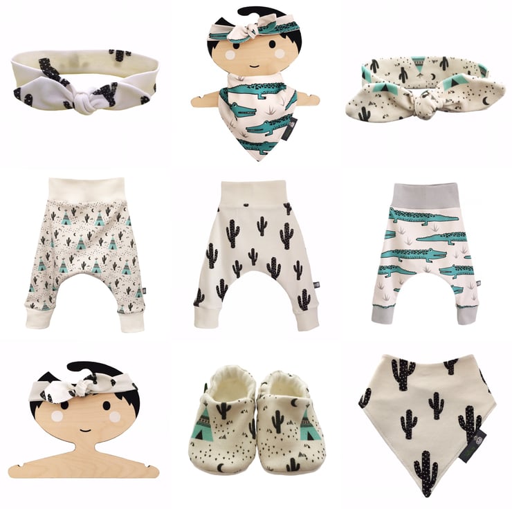 Complete an outfit with our matching/co-ordinating items including Knotted Headbands, Hats, Scarves, Scratch Mittens, Cuff Shorts, Harem Pants, Relaxed Cuff Pants, Leggings & Pram Shoes