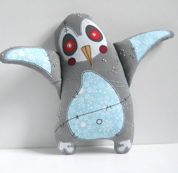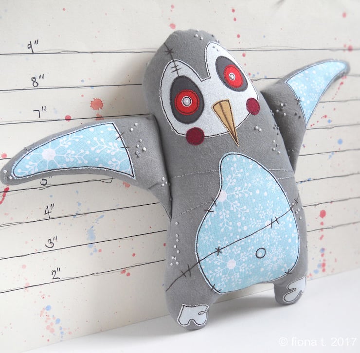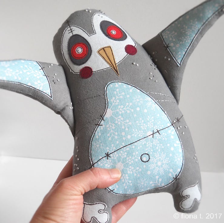 penguin has been made entirely on a domestic sewing machine – there is no computerised wizardry here - everything is cut, stitched & drawn freehand by me.