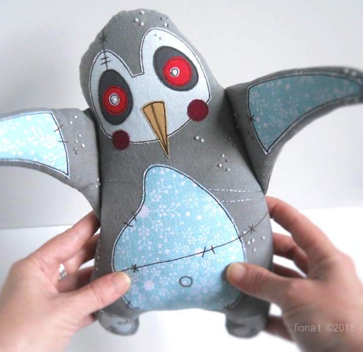 penguin has been made entirely on a domestic sewing machine – there is no computerised wizardry here - everything is cut, stitched & drawn freehand by me.