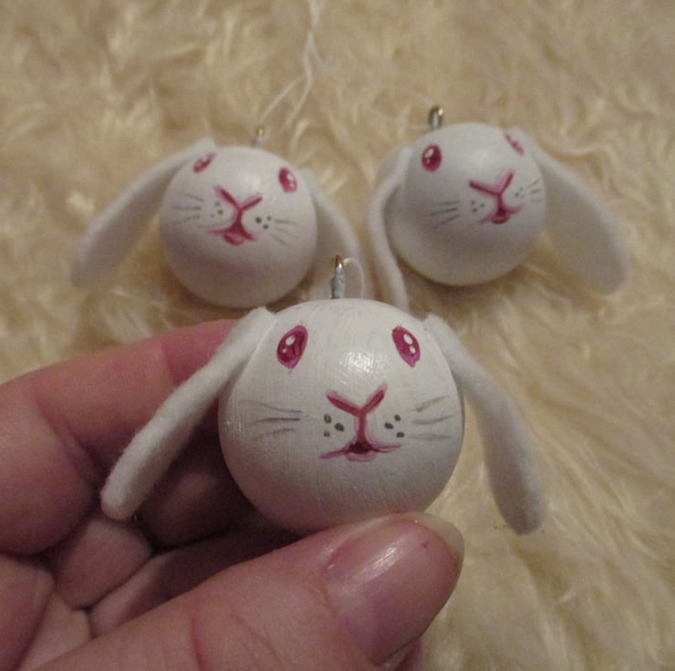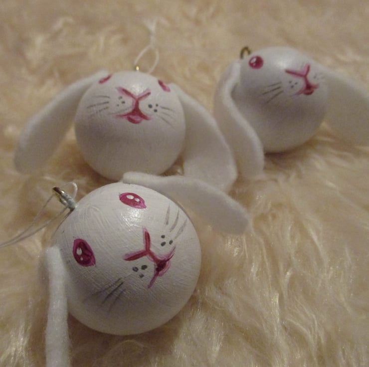 This listing is for the set of bunny baubles pictured. They are white with white ears and pink eyes.