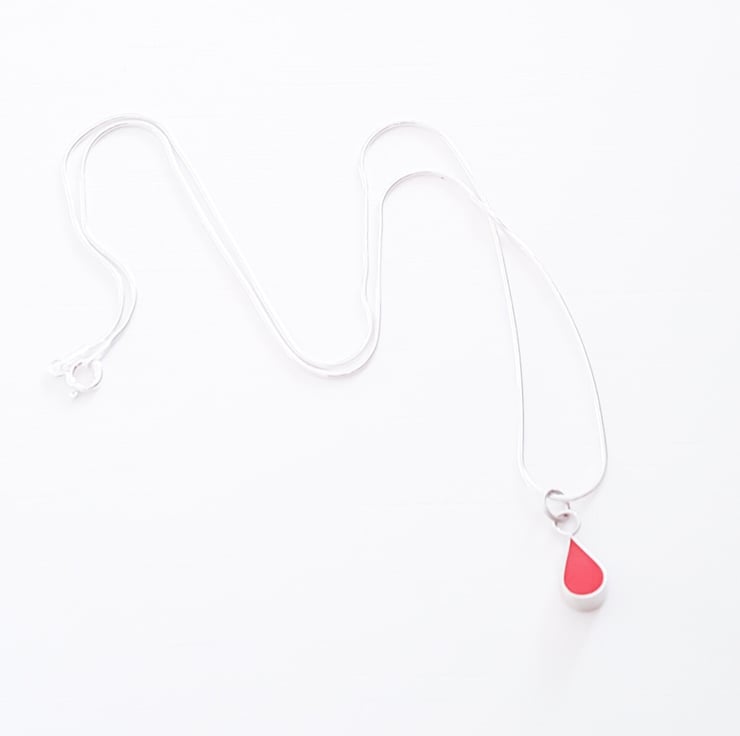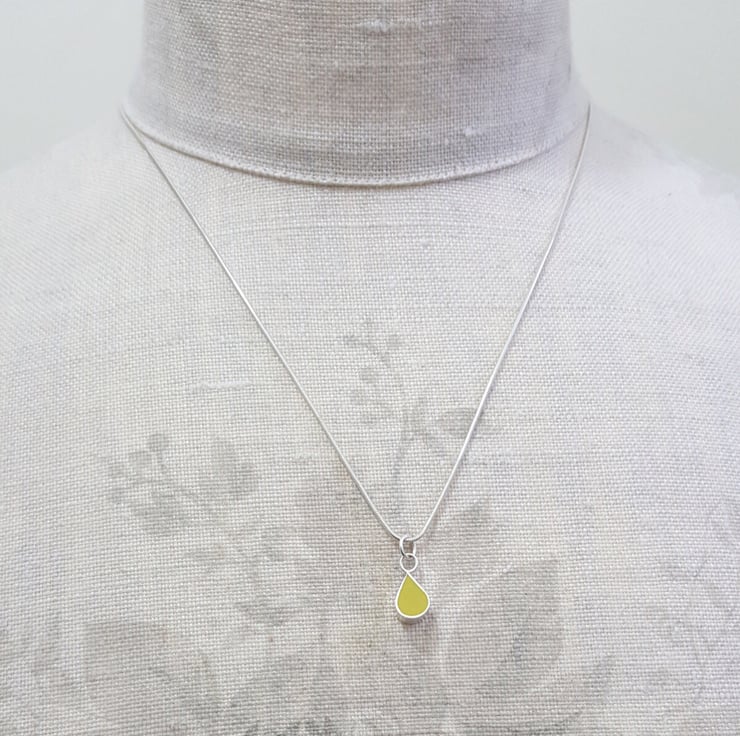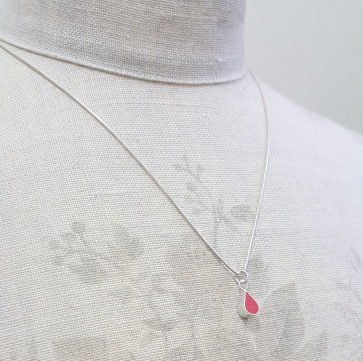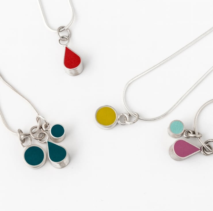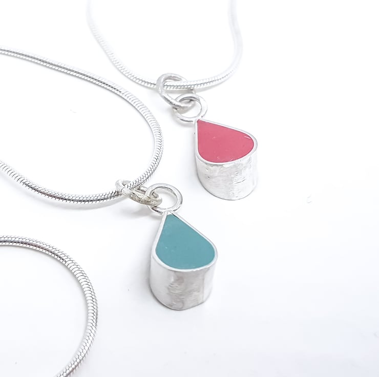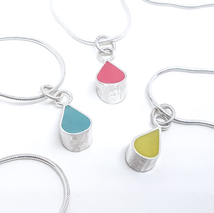 These little colour drop pendant necklaces are part of my Colour Dot range of minimalist, everyday jewellery and are handmade from recycled sterling silver and resin clay for the coloured setting.