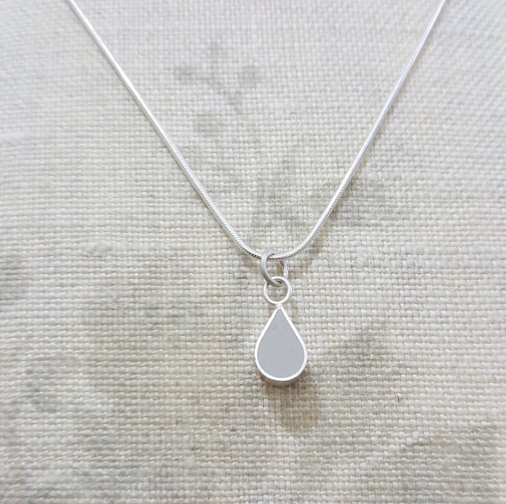 The tear drop shaped pendant is made from recycled sterling silver drop shaped pendant and i have filled the setting with resin clay in a choice of six different colours. I use resin clay for my settings and I mix the colours like paint to create a never ending range of gorgeous hues. Once the resin has set, I file it to a soft, smooth, matt finish that resembles coloured stone. These pendants are a pleasing wedge shape so they are wider at the bottom and taper towards the top and they are very tactile. They are also reversible so they are coloured on both sides.