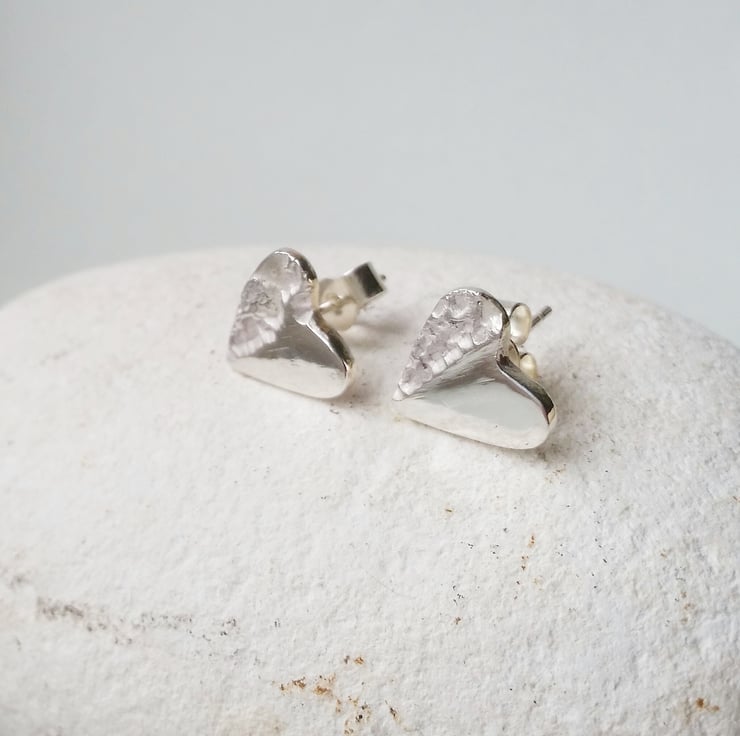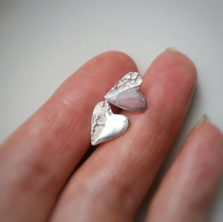 These are the prettiest pair of heart stud earrings handmade from fine silver.