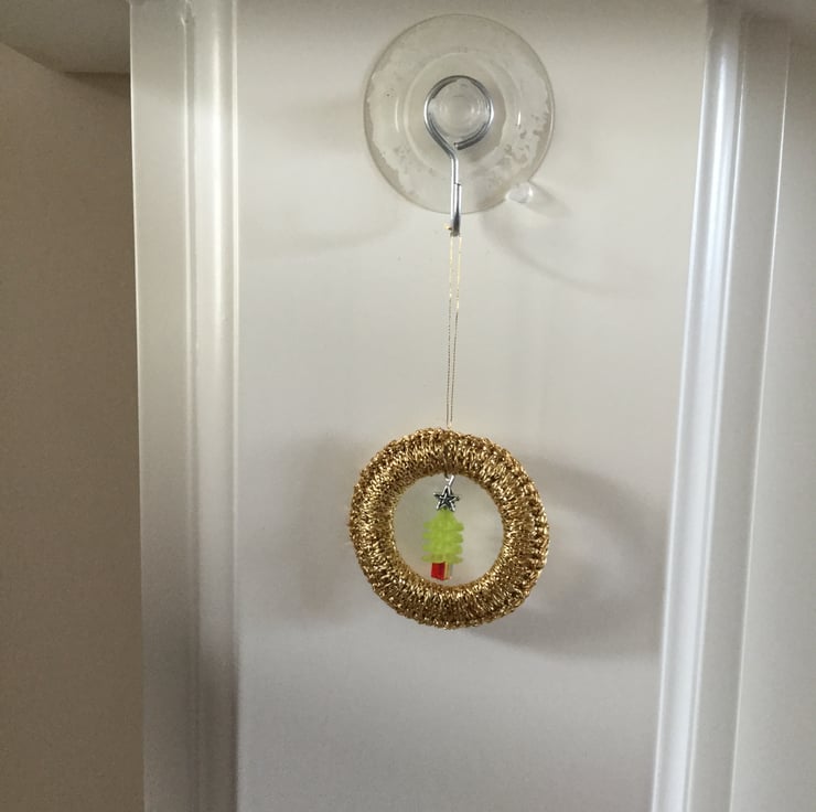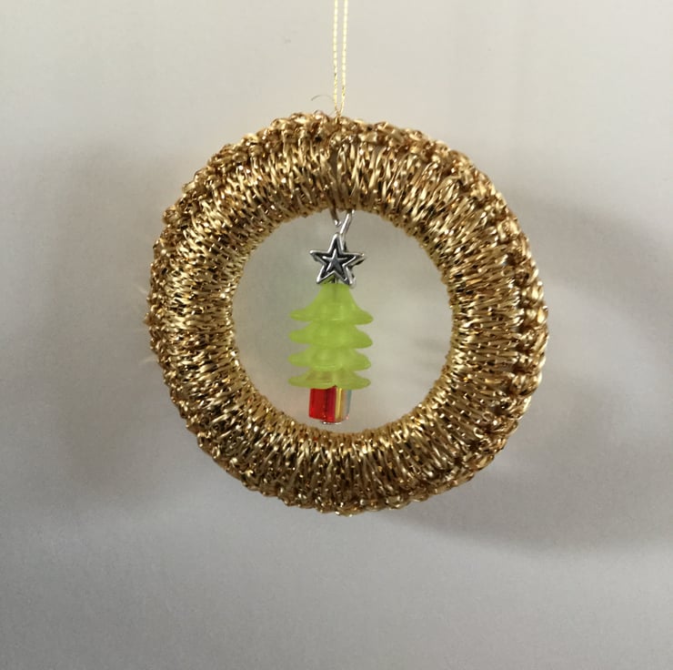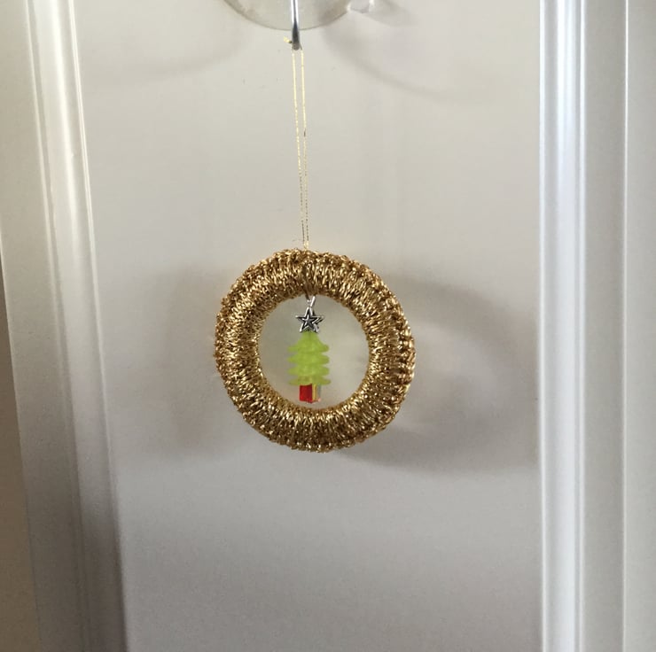 There is a red and green beaded tree with a tiny star on top, which I have made, fastened in the middle.