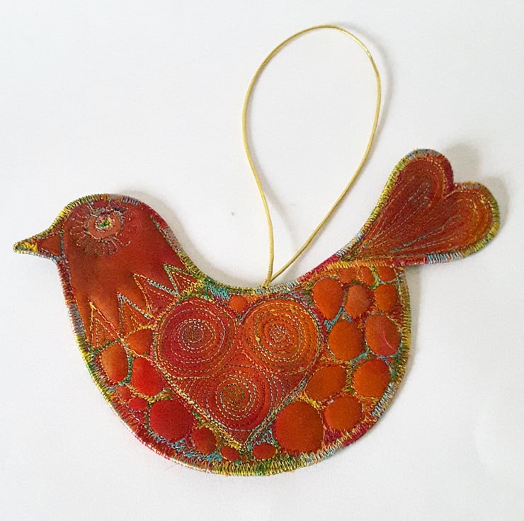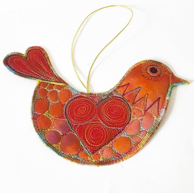 This is a handmade machine stitched fabric hanging Bird Decoration