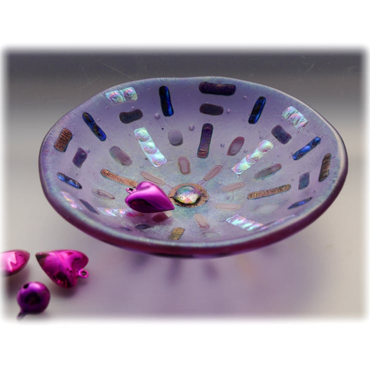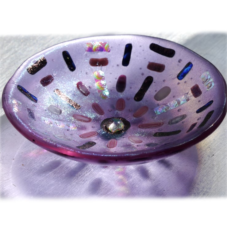 This piece has a lovely sparkle and is very tactile..A very pretty little bowl with magical rainbow colour properties.