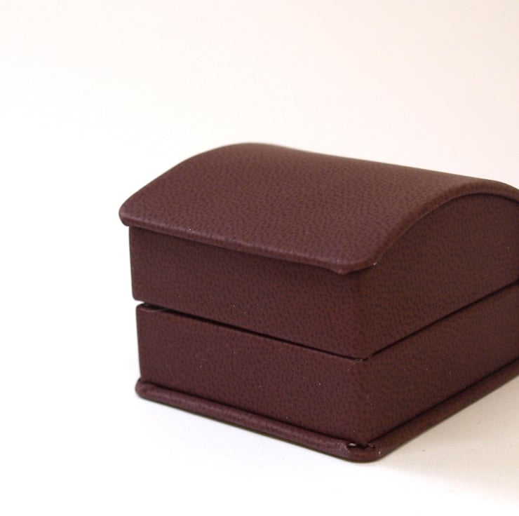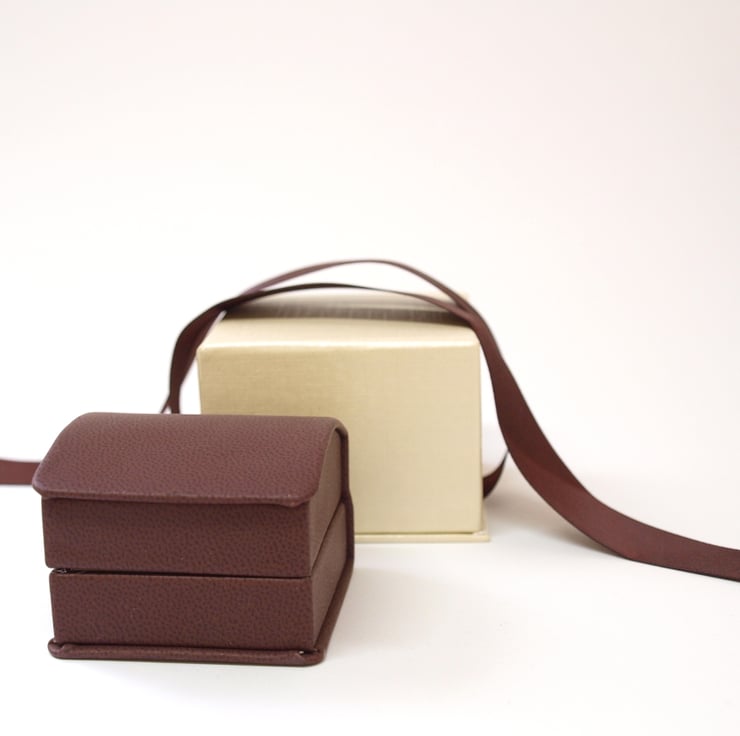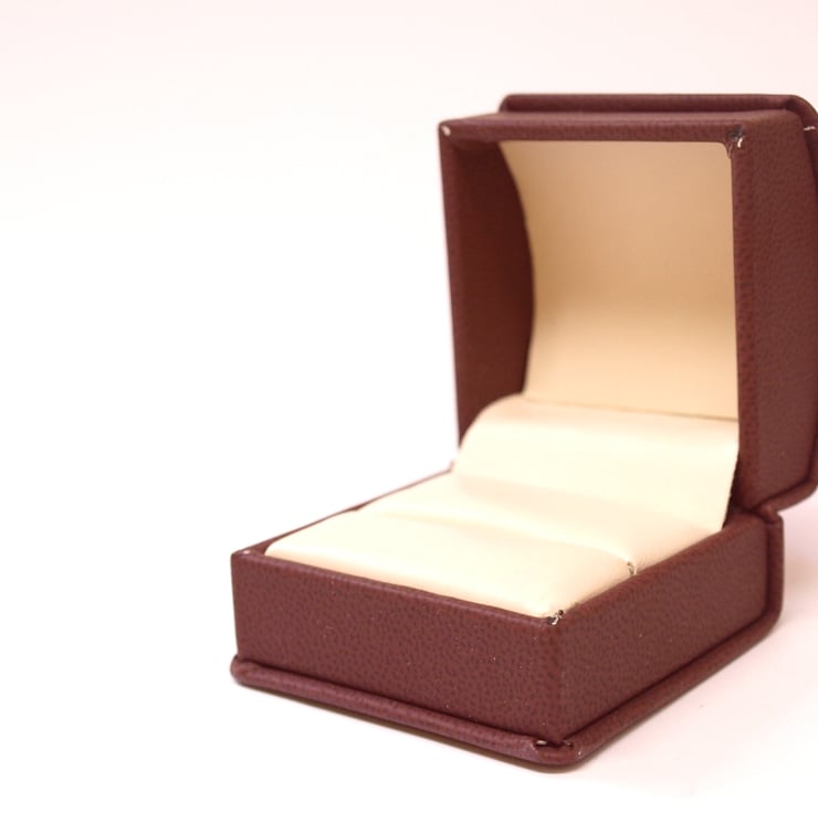 Beautiful leatherette ring box in rich burgandy and ivory. This box has a lovely soft leatherette exterior and ivory interior and comes in a matching box with satin ribbon, ready for gift giving.