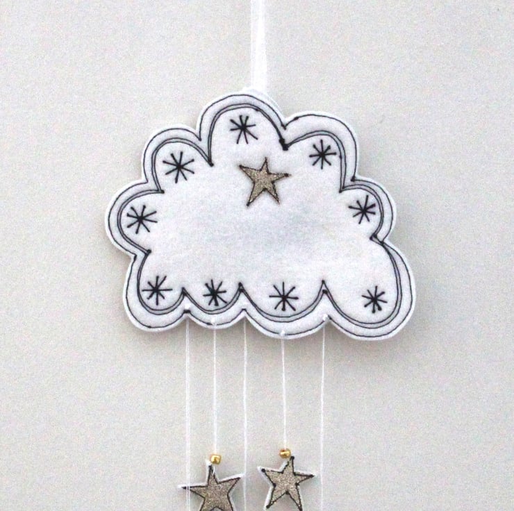 The cloud measures 11cm height and 15cm width and the stars suspend up to 15cm in length.