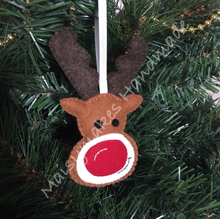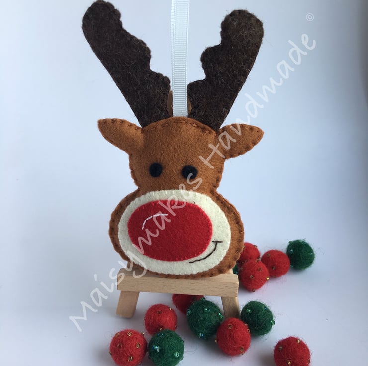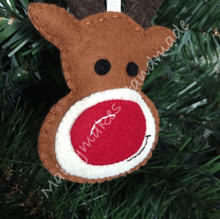 This 100% Wool Felt Christmas Reindeer has been designed from my own original hand drawn image, and has been made completely by hand by myself. It is made from 100% wool felt and has a ribbon loop attached for ease of hanging. This unique item would be perfect on your Christmas Tree or as a Hanging Decoration in your home.