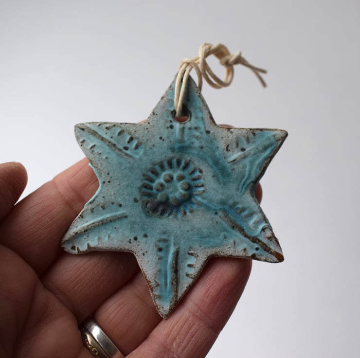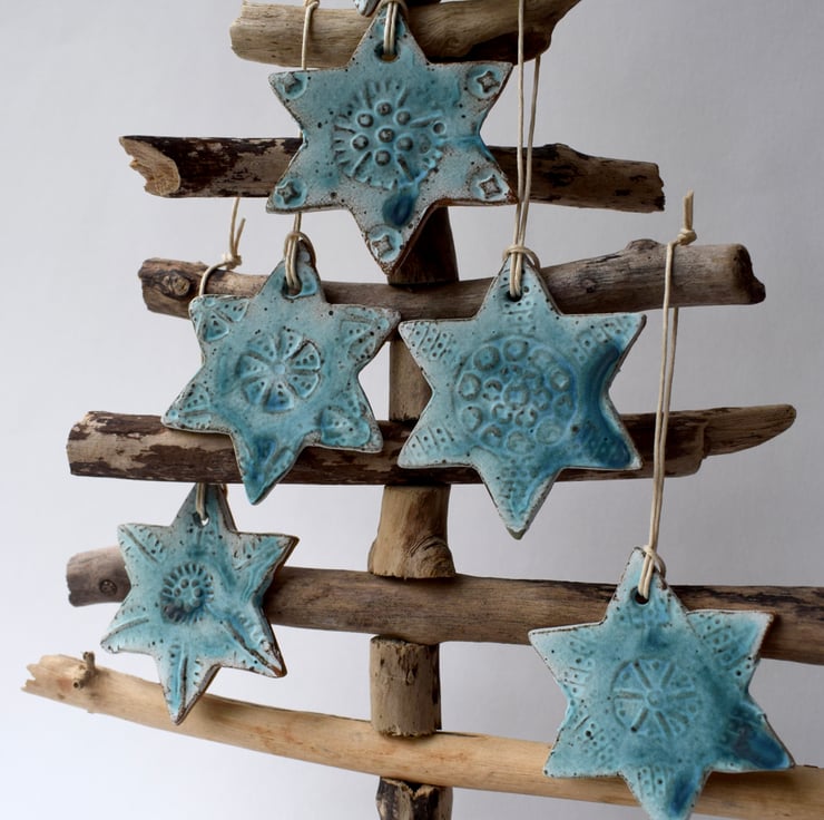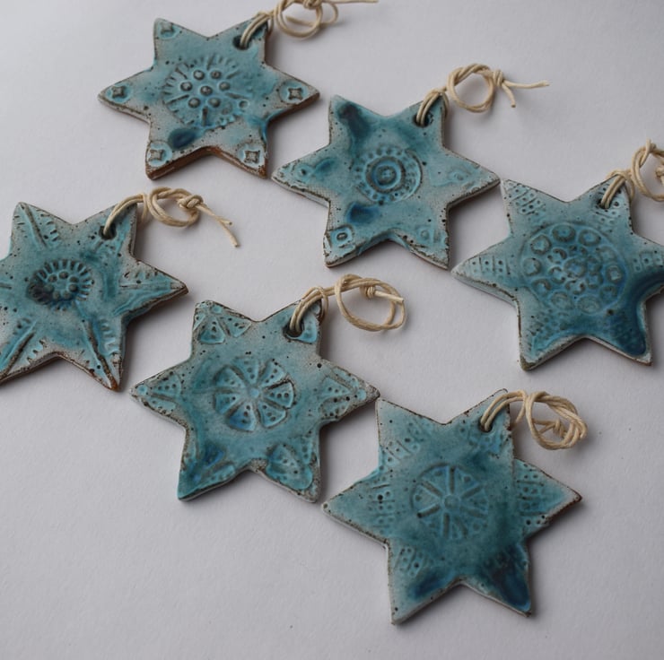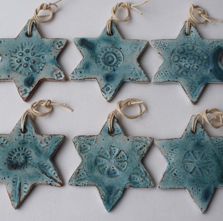 These six stars are all different, but have been decorated with ceramic stamps I made earlier this year using similar mark makers to add texture and pattern.