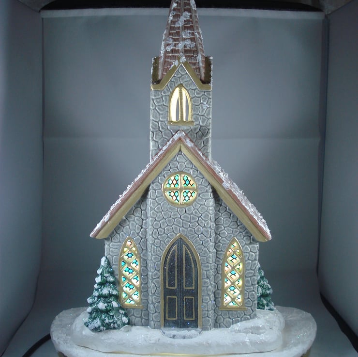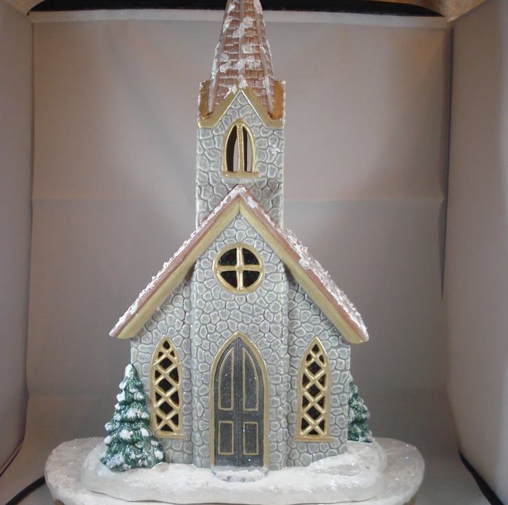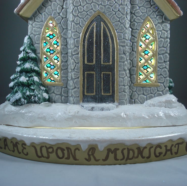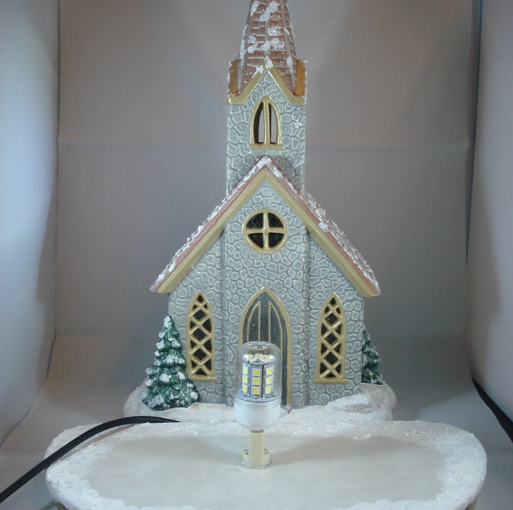 I have for sale a ceramic Christmas table lamp, which was hand painted and decorated by myself. It is a large snowy, glittery church sat on a snowy, glittery base. The base is completely separate and contains the electrics. Engraved on the base are the words 'It came upon a midnight clear'. Included in the sale is a free G9 LED bulb. PLEASE NOTE: the plug will be supplied, but it will NOT be fitted. This would make a lovely addition to anyone's Christmas decorations, or perhaps given as a gift.