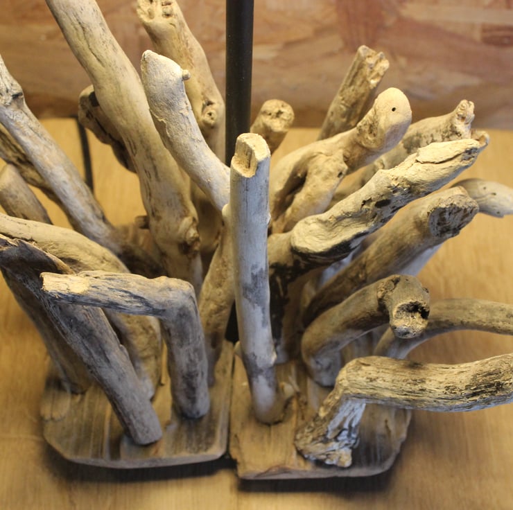 Table lamp made using natural pieces of driftwood. Each piece of wood has character, that creates an interesting and beautiful table lamp.