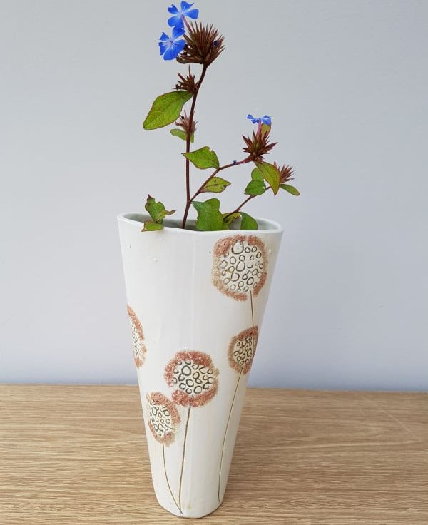 This beautiful stoneware ceramic vase has been handmade by me in my studio and is a completely one-off piece.