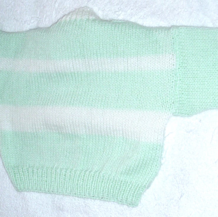hand knitted cream and mint striped jumper to fit 6 month old baby,