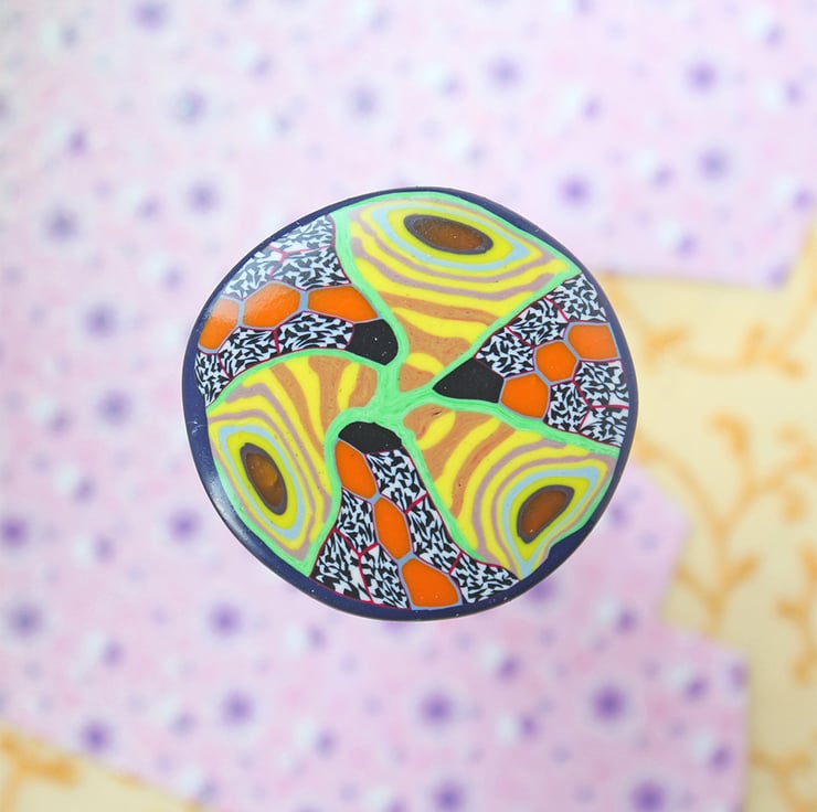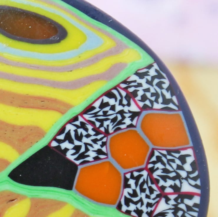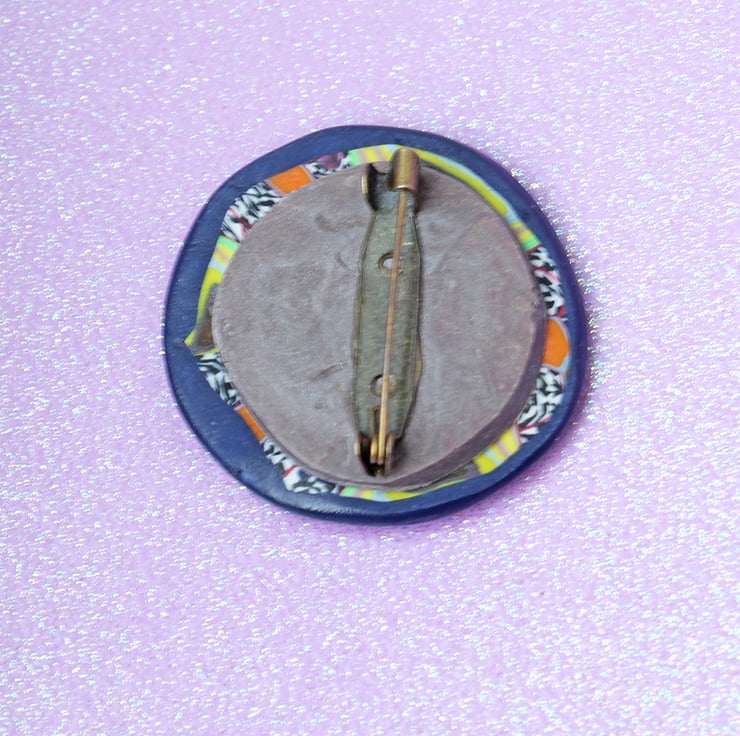 Brooch - Unique and Lively Badge Style Polymer Clay - Hippy - Retro - Woodland