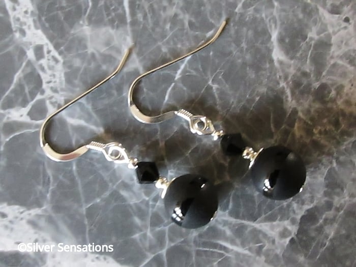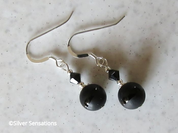 Dainty & elegant, these ladies jet black earrings have frosted Black Onyx 8mm round beads with a shiny stripe around the middle, making these earrings an ideal gift at £15.