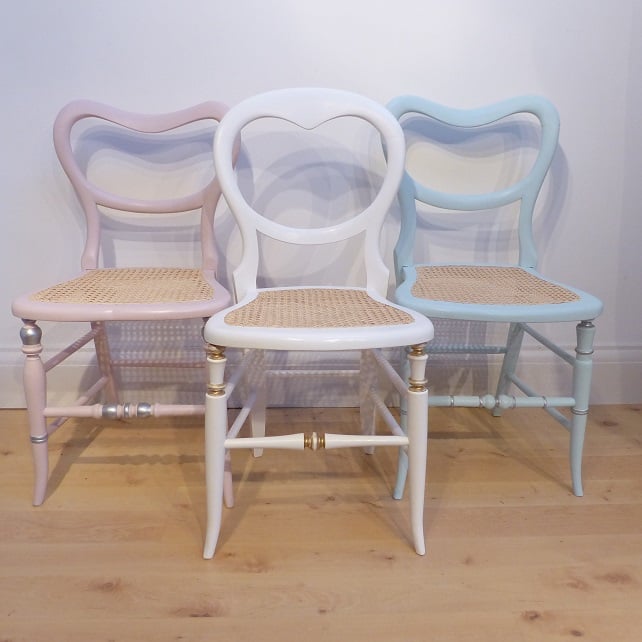 I've always loved the character of old furniture and I've found a new way to indulge my love of colour, choosing striking or classic shades to bring a new lease of life to shabby, unloved chairs. The re-caning takes several hours of back-breaking work but I'm always pleased with the result!