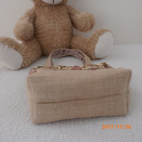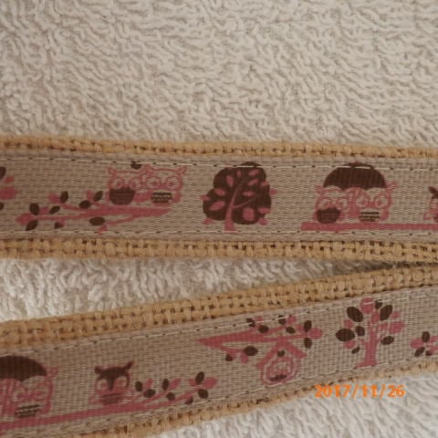 The handles have a cotton tape stitched to the inside to add decor, it has owls, trees and flowers printed as seen in picture 5.