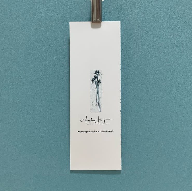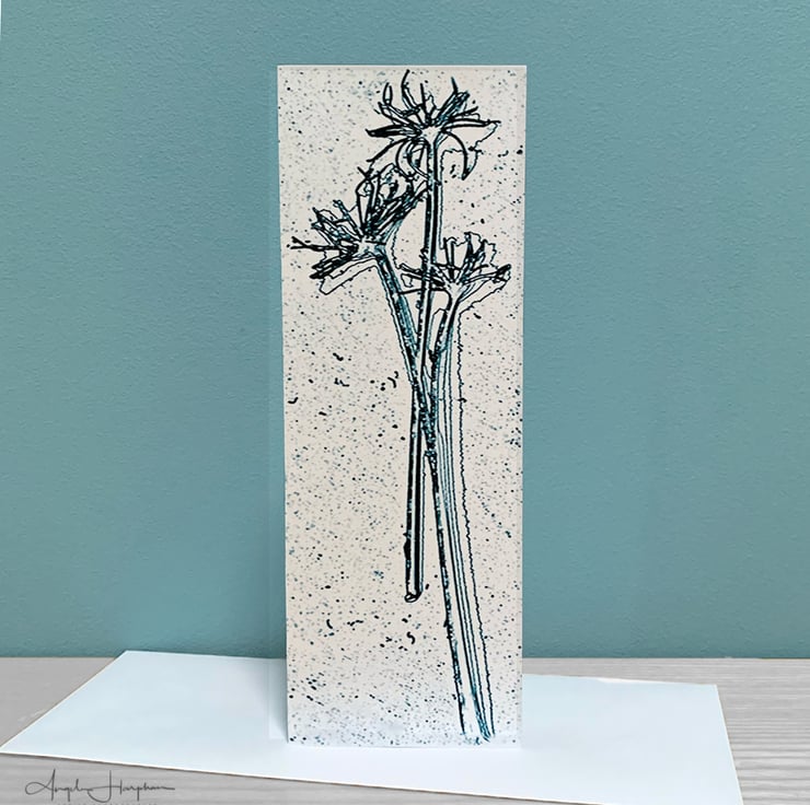 A slim blank art card, an inkjet print of a scan of dried hedge parsley that I digitally enhanced. Lovely as a bookmark.