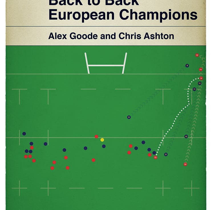 This edition depicts the great try by Chris Ashton for Sarries against Clermont Auvergne in the European Cup Final 2017. The try was set up by a fantastic defence splitting kick from Alex Goode. The ball popped up invitingly for Ashton to grab and cross the line before launching himself in the air for his customary try celebration! Sarries won the game, played at Murrayfield, 28-17 to retain the European title they had won a year earlier against Racing 92.