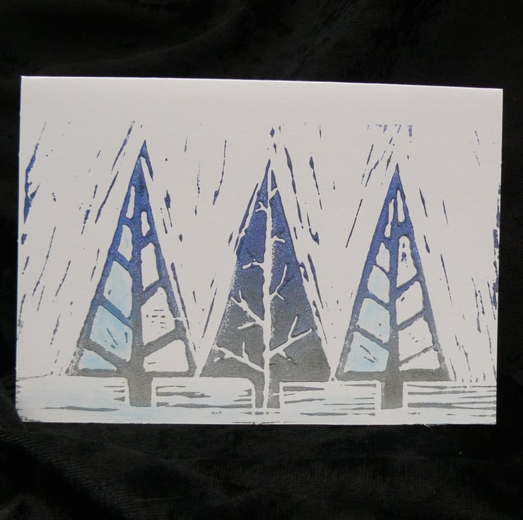 Each card is individually hand printed in blue and silver ink before being finished with a rich blue iridescent mica pigment to add a subtle glimmer. As is the nature of hand printed cards, each one is slightly different and unique.