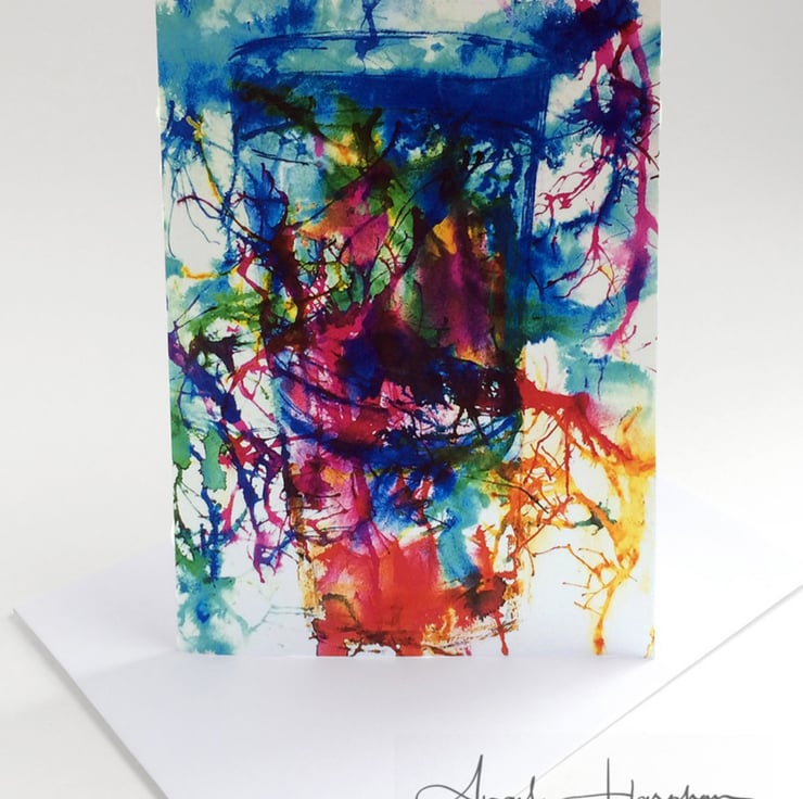 I like this vibrant fluid image of a glass and reflections and think it makes a good art card for any occasion..