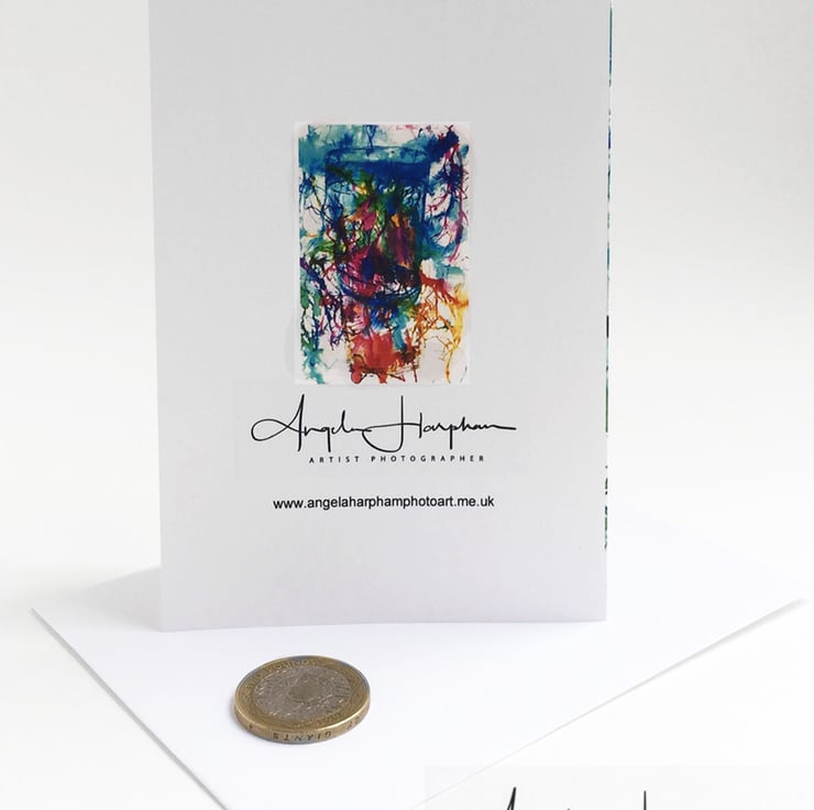 Blank card with envelope from a semi abstract original textile piece of blown ink an d watercolour, creatively developed in Photoshop.
