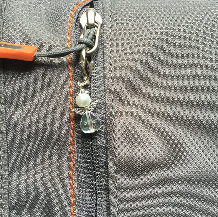 It is attached to a lobster claw catch to enable it to be fastened easily to your bag,keyring, keychain or zipper pull.