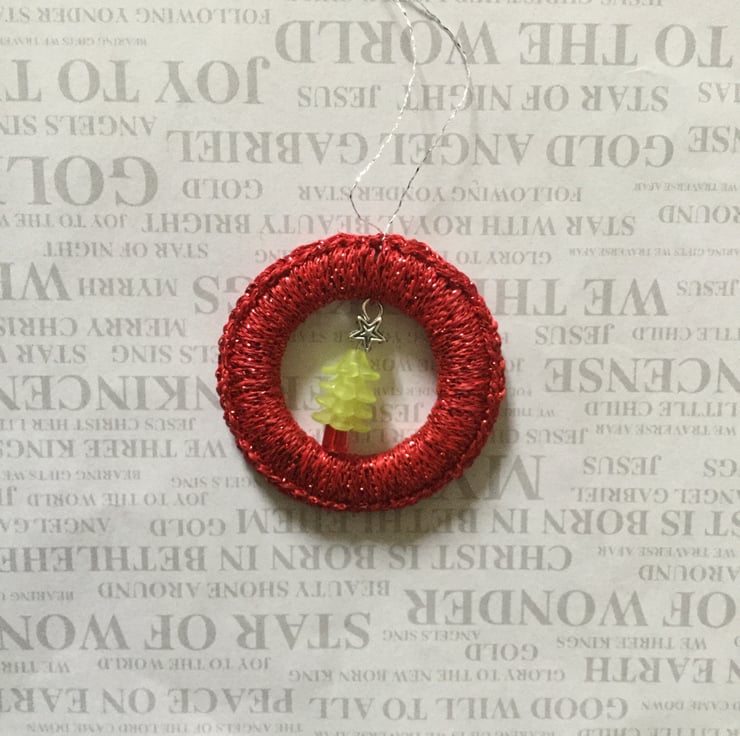 There is a cute little beaded tree with a tiny star on the top, which I have made, fastened in the centre.