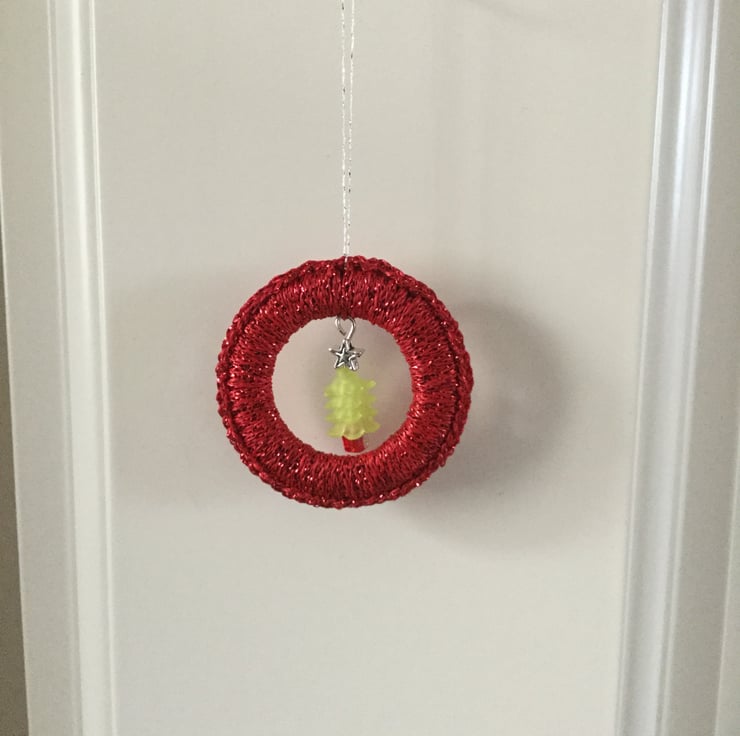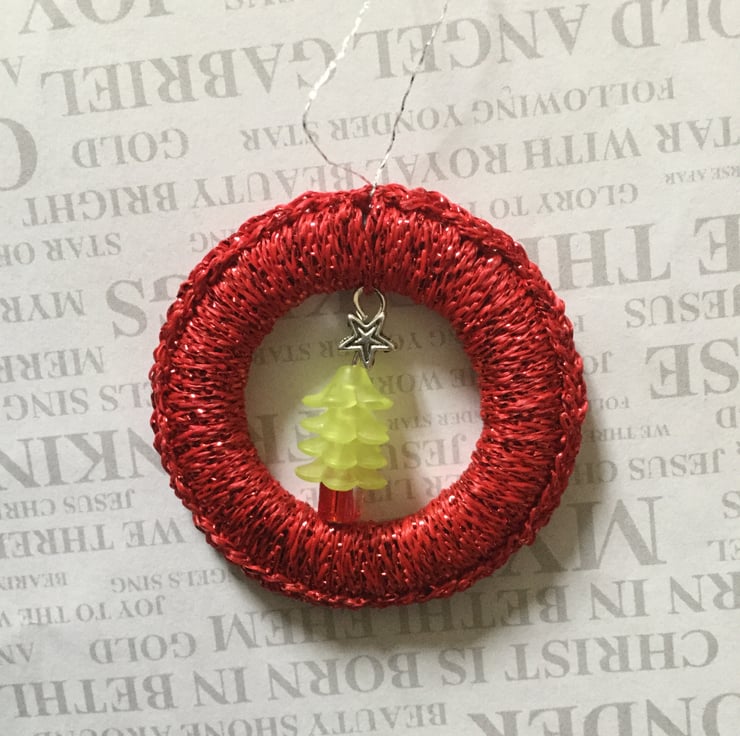 I have crocheted over a plastic ring using red lurex yarn to make the outer circle.