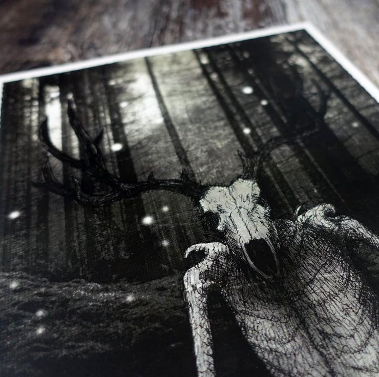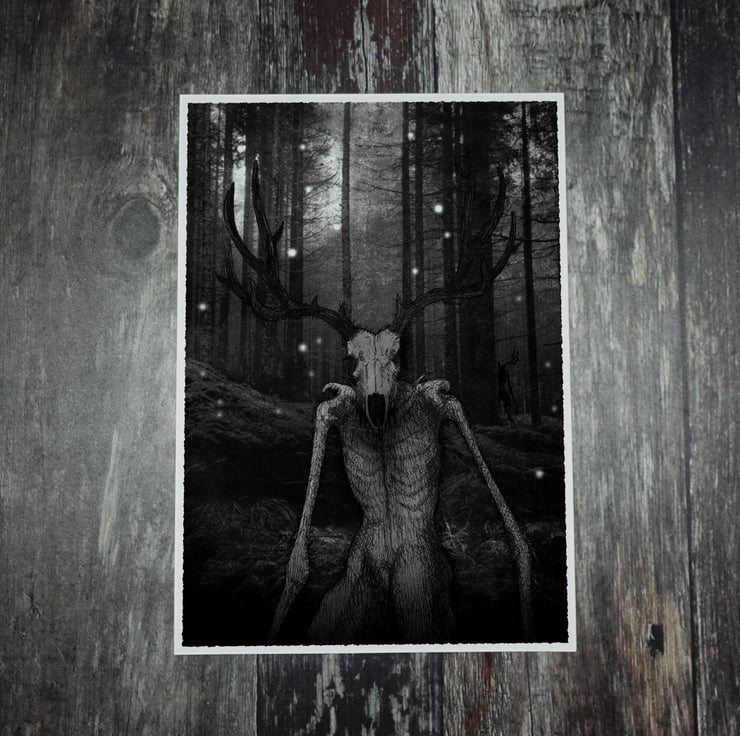 This Wendigo illustration, inspired by horror and mythology, is printed on high quality satin silky paper stock that really enhances the colour of this atmosphere of this spooky artwork. Frame is not included.