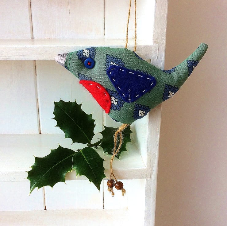 Retro robin made with 80s vintage fabric , by WittyDawn .