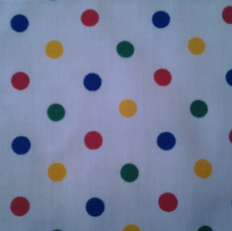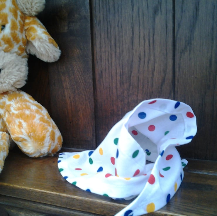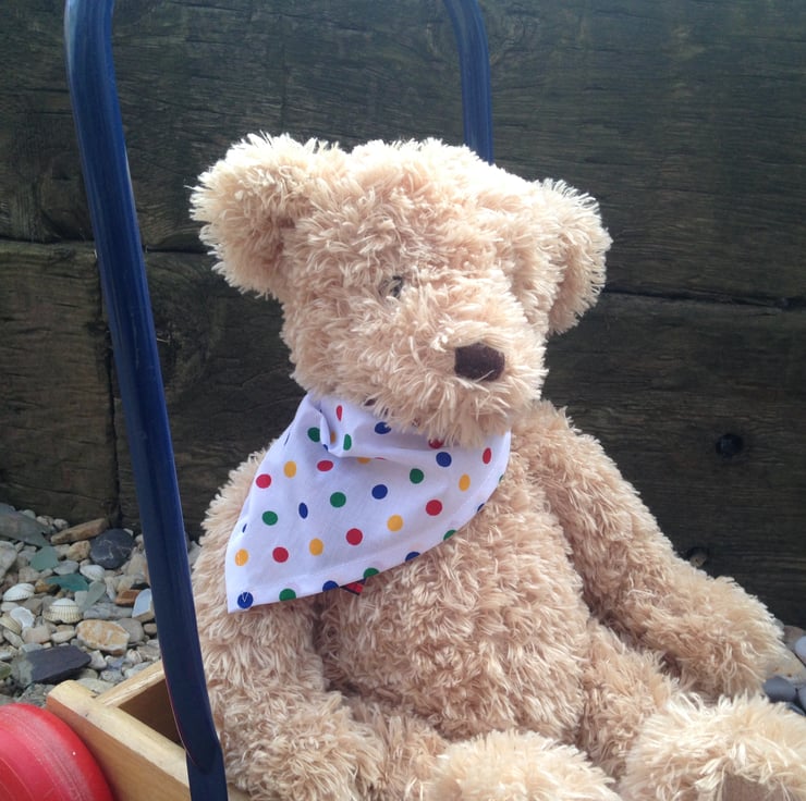 Traditional Neck Tie Dog Bandana for Cutie Little Dogs such as a Yorkshire Terrier. Would make a great accessory for a Doll or Teddy too. This Polka Dot Bandana has been handmade using Multi Coloured Spots Fabric