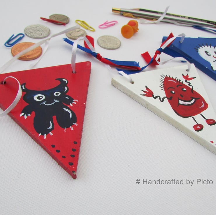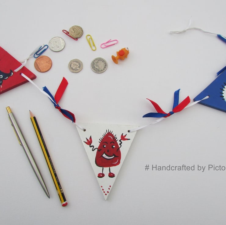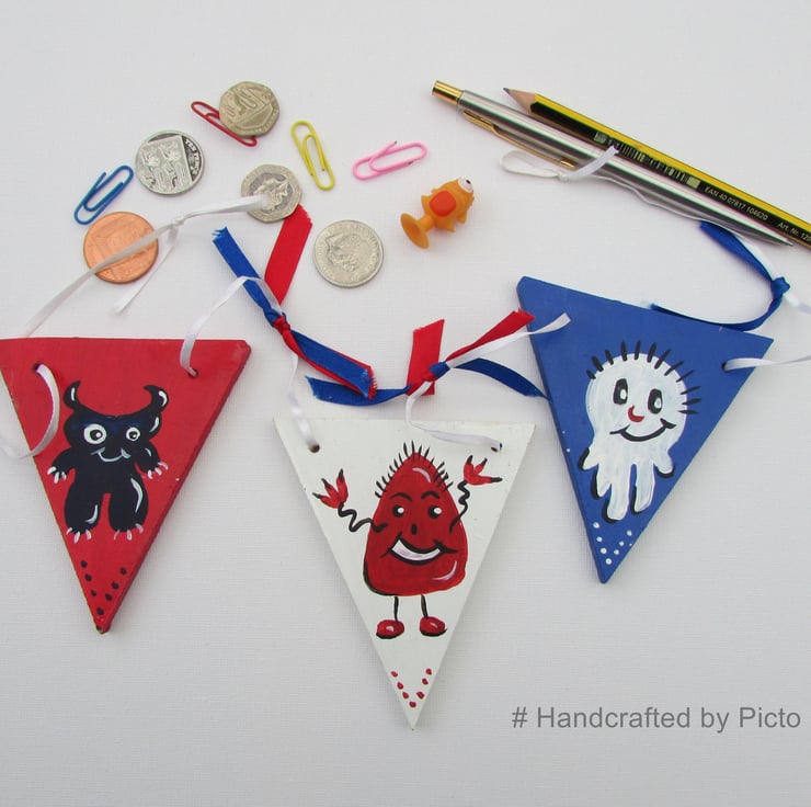 Bunting, handmade, handpainted Little monsters for your 'little monster'