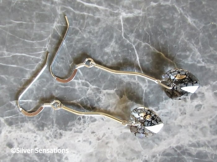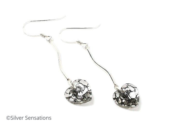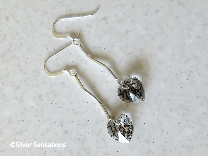 These heart crystals are from the world famous crystal company in Austria & each one has its own, unique markings. They dangle independently from solid Sterling Silver curved bars which adds to the lovely swing of these earrings.