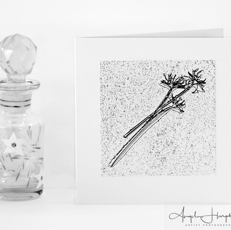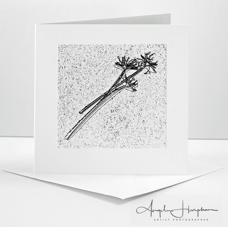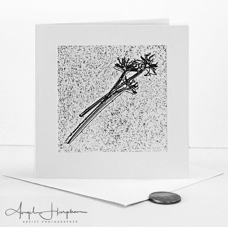 A square blank art card, an inkjet print of dried hedge parsley that I have digitally enhanced.