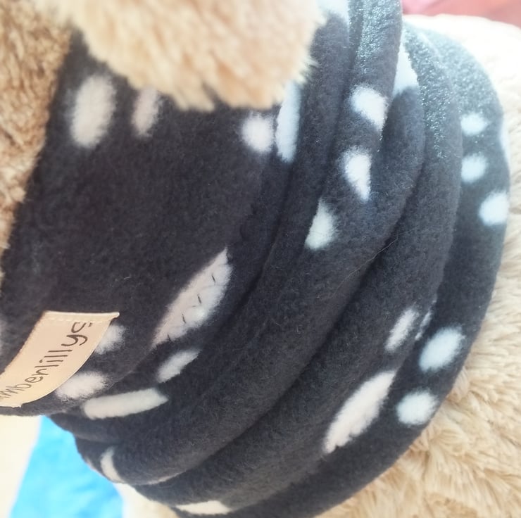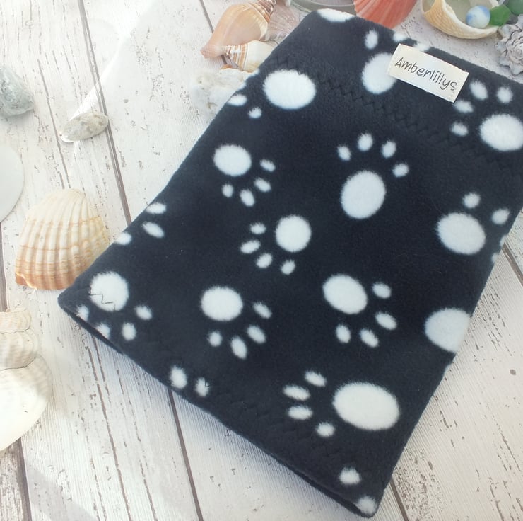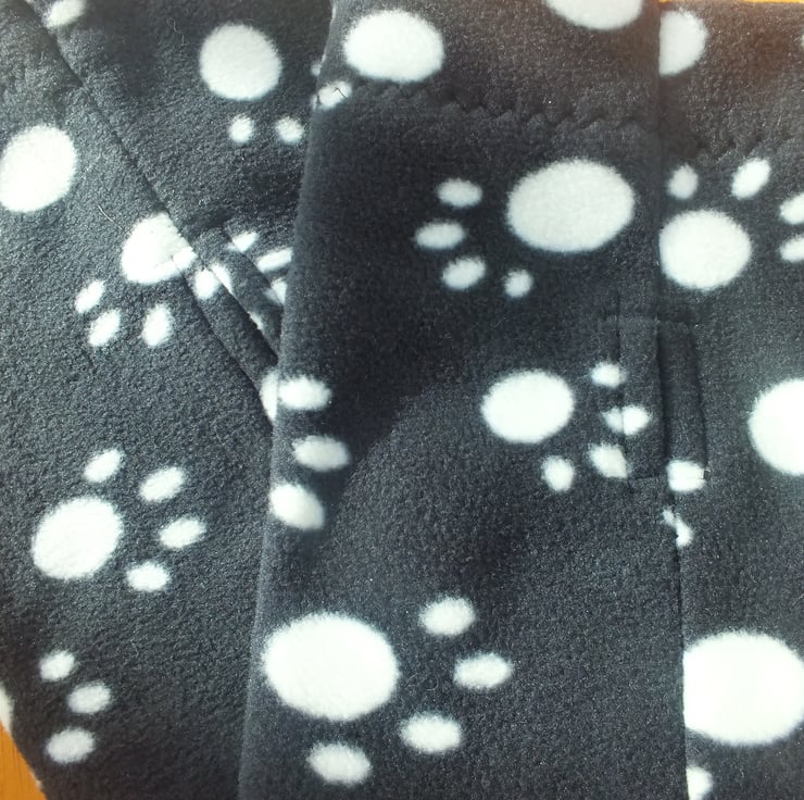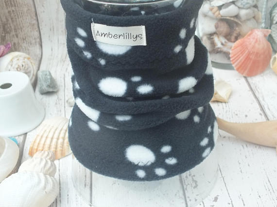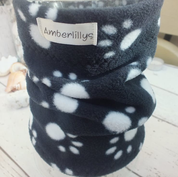 A Single layer paw print dog neck cowl, neck warmer in fleece fabric