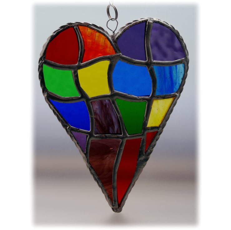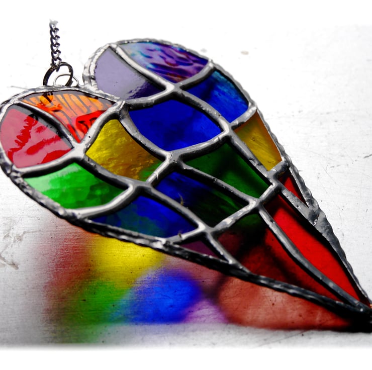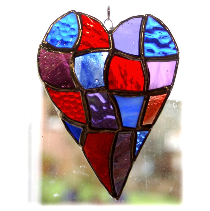 This is a stained glass suncatcher made using the Tiffany copper foil technique.