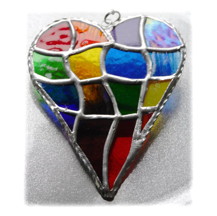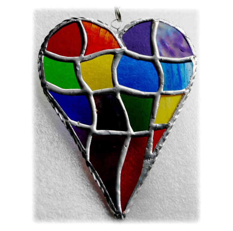 The 5th photo shows a previous heart made to the same pattern but in blue, purple and red shades.