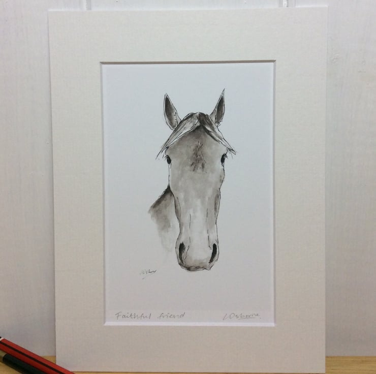 Faithful friend - high quality open edition print of one of my illustrations - a pen, ink and watercolour painting of a horse’s head.