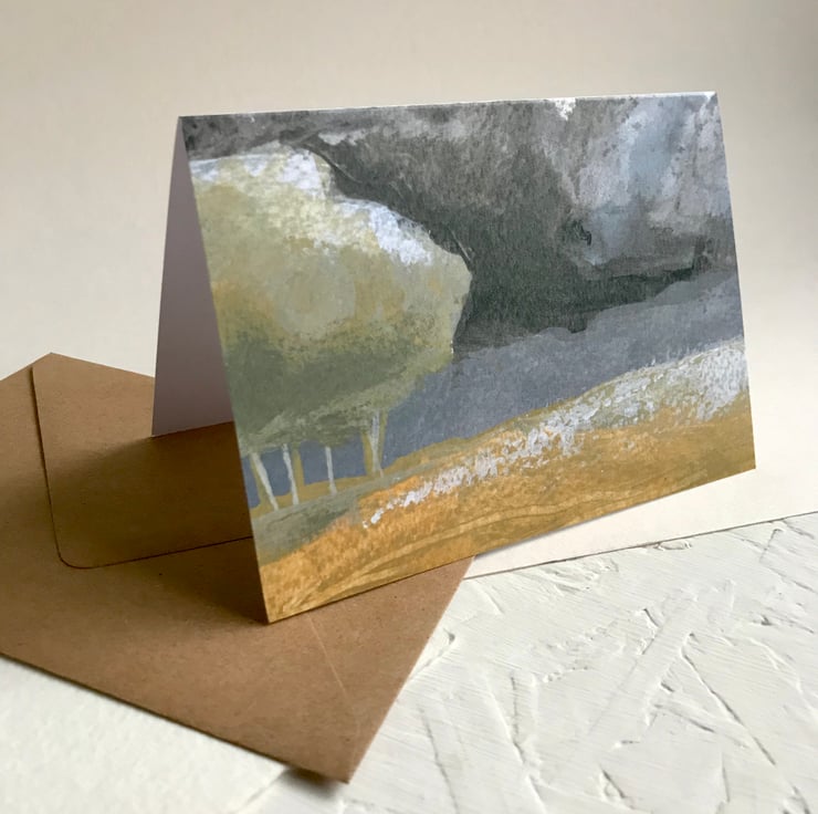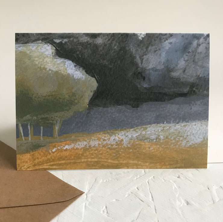 Inspired by the changing seasons and weather of the British countryside, this moody greetings card is blank inside and suitable for any occasion. Perfect for someone who likes trees, nature, walking, hiking or generally rambling around in the countryside.