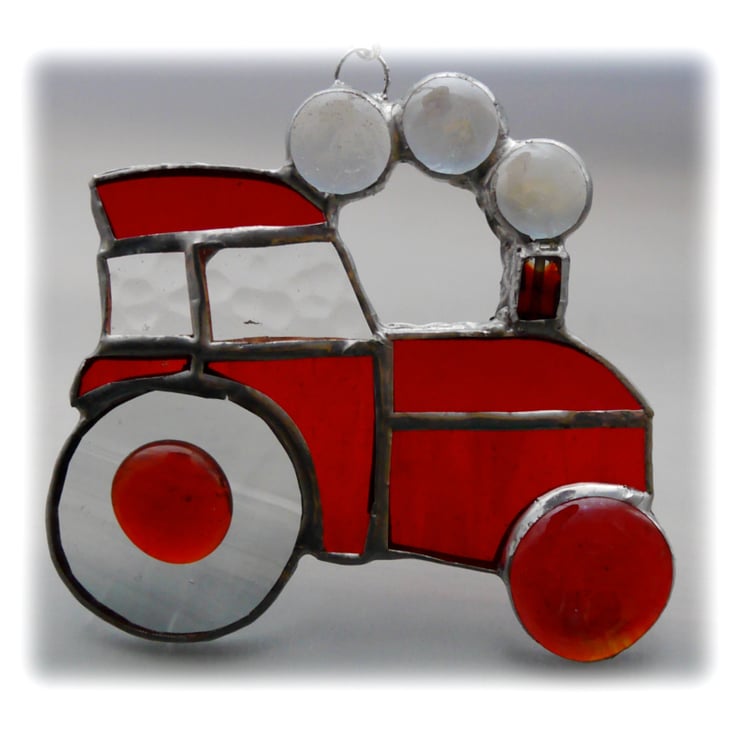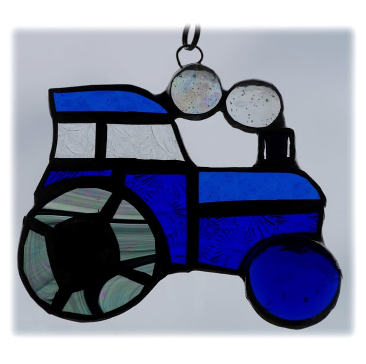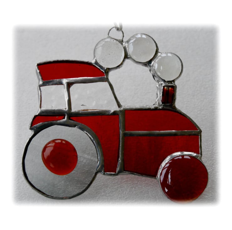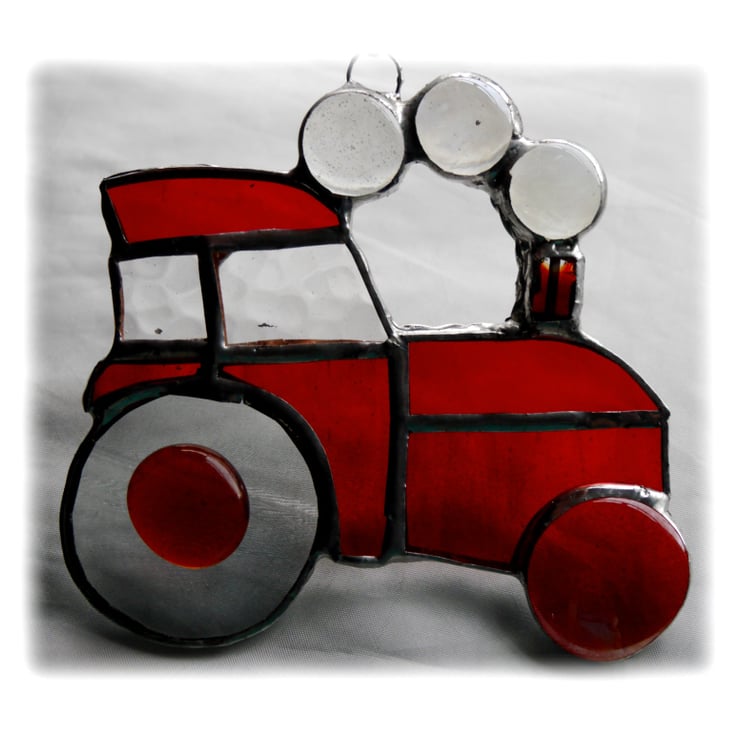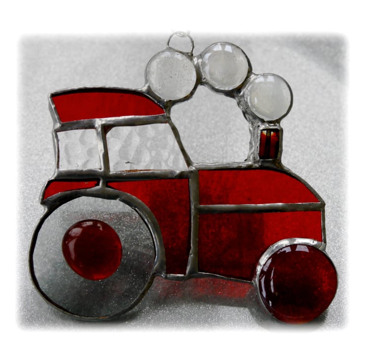 The suncatcher hangs from a little chain which is securely attached to the top of the tractor.