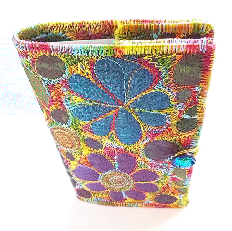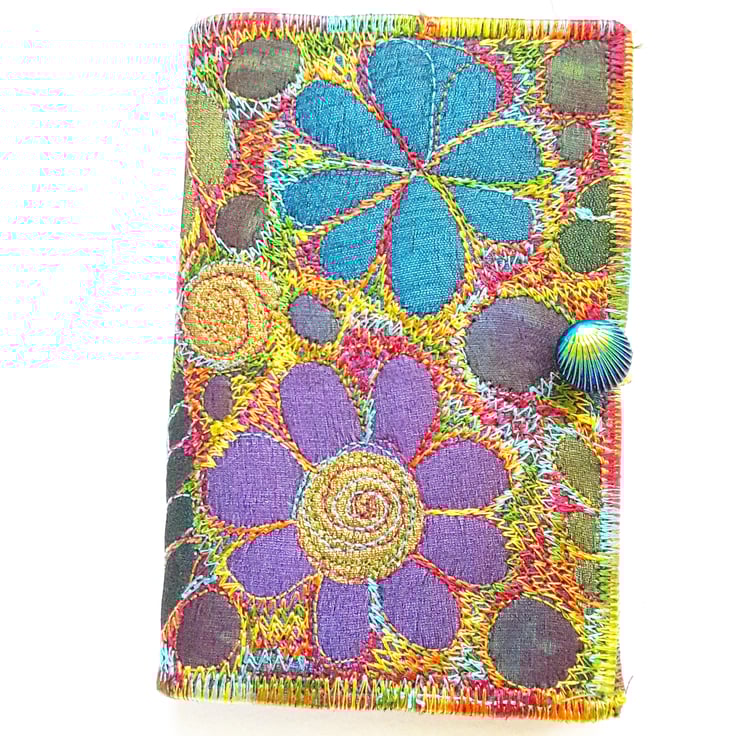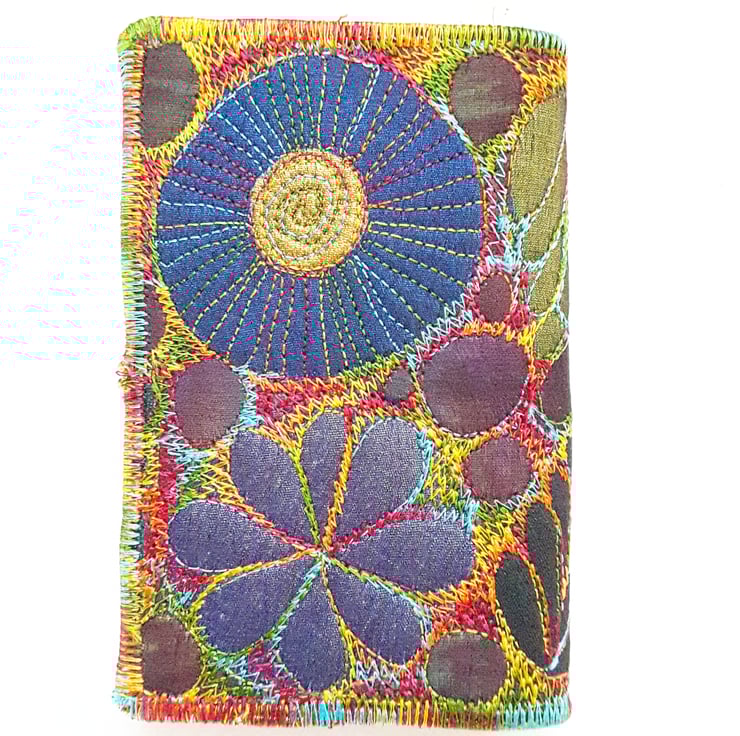 This is a handmade machine stitched fabric notebook cover