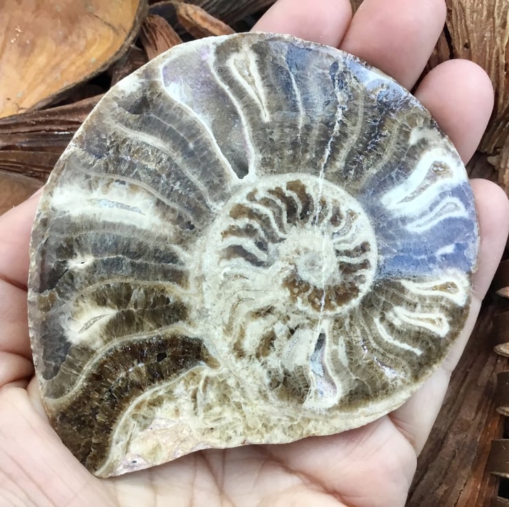 A beautiful and substantially large polished half ammonite, which would be suitable for display, photographic prop, custom jewellery making, or crafting project.