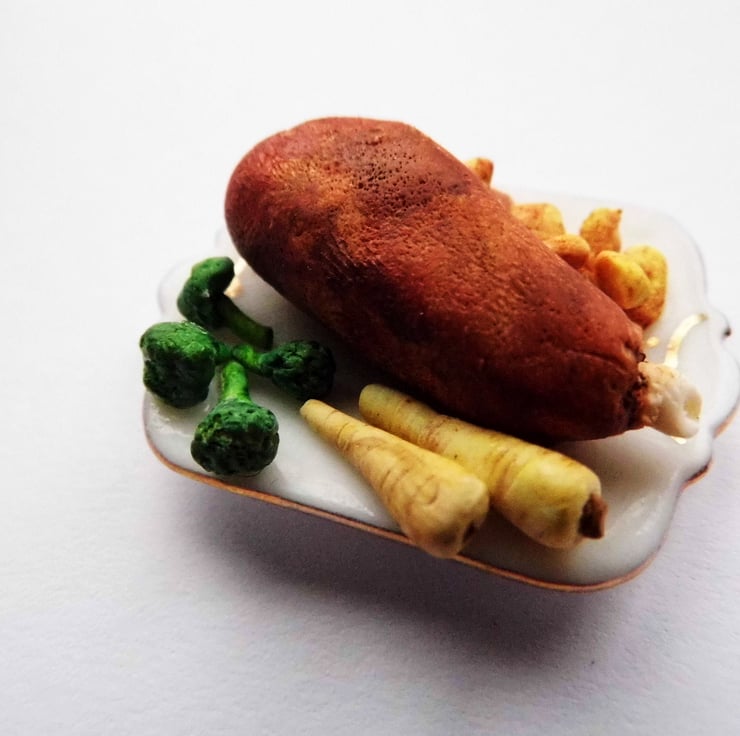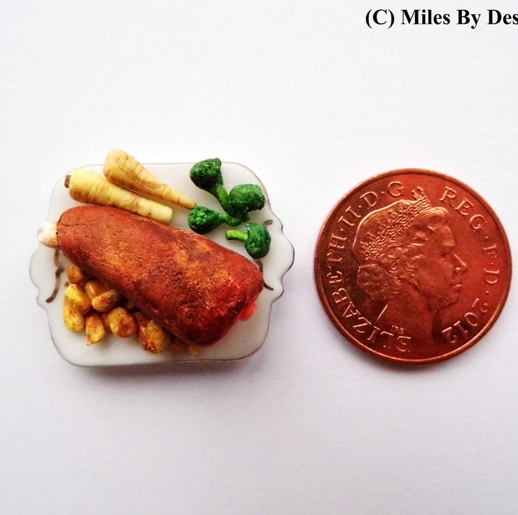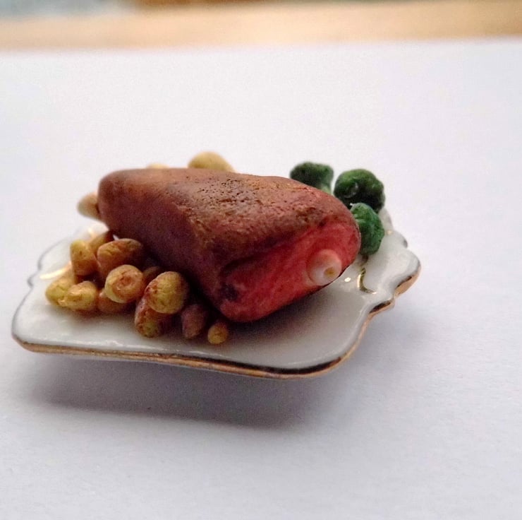 Now your dolls can enjoy a decadent sunday lunch with this detailed leg of lamb with all the trimmings.