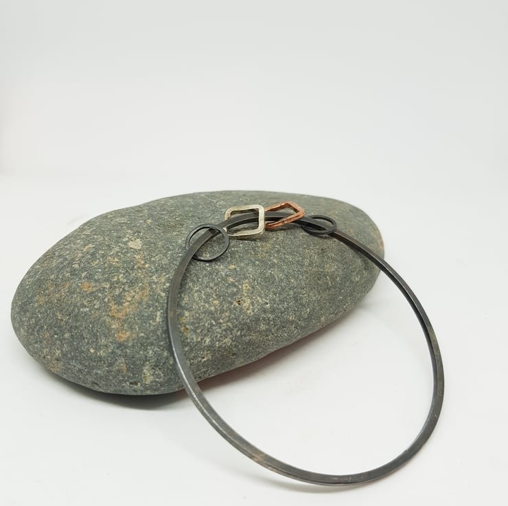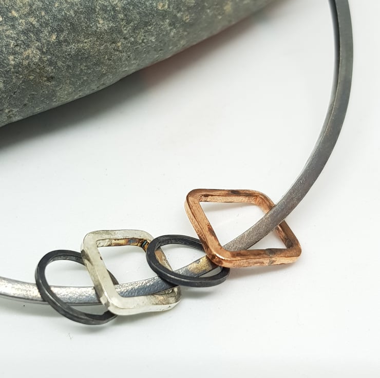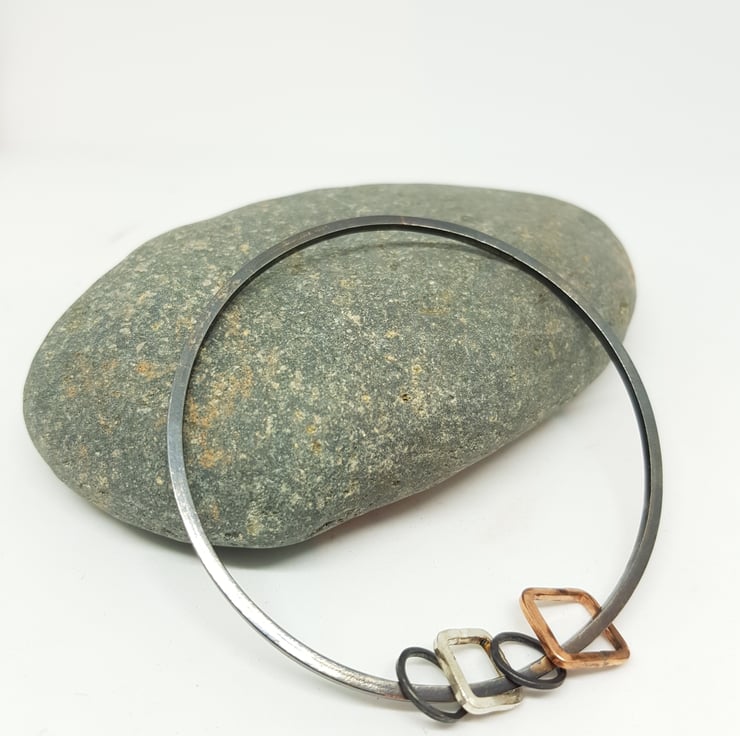 The bangle is made using 2mm square silver wire which has been treated with liver of sulphur to create the oxidised finish.